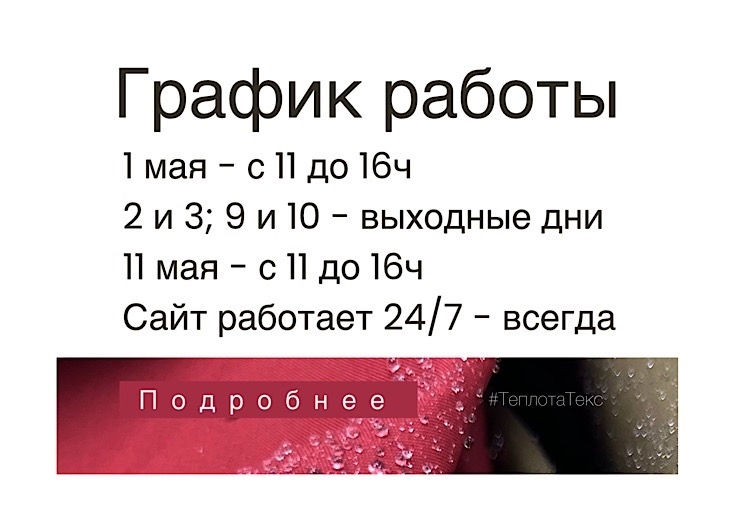 Не беда - наш сайт teplotateks.ru/ работает 24/7.