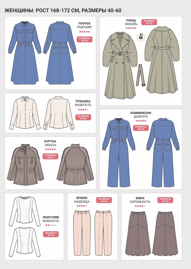 рост 168-172, размеры 40-60